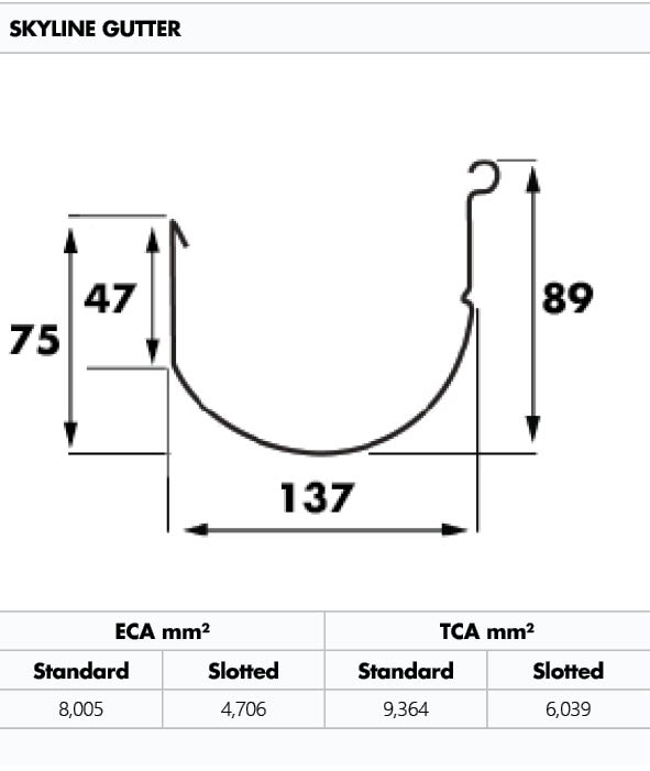 The Skyline Gutter is an elegant, modern profile well suited to high-end architectural applications.
